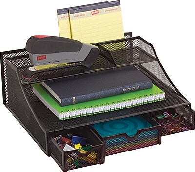 DESK ACCESSORIES SPARCO® A. Black Mesh/Wire Desk Accessories • 3 tier, front-loading design • Unique steel mesh design features smooth edges and an excellent finish • Overall dimensions: ... Fetch Here